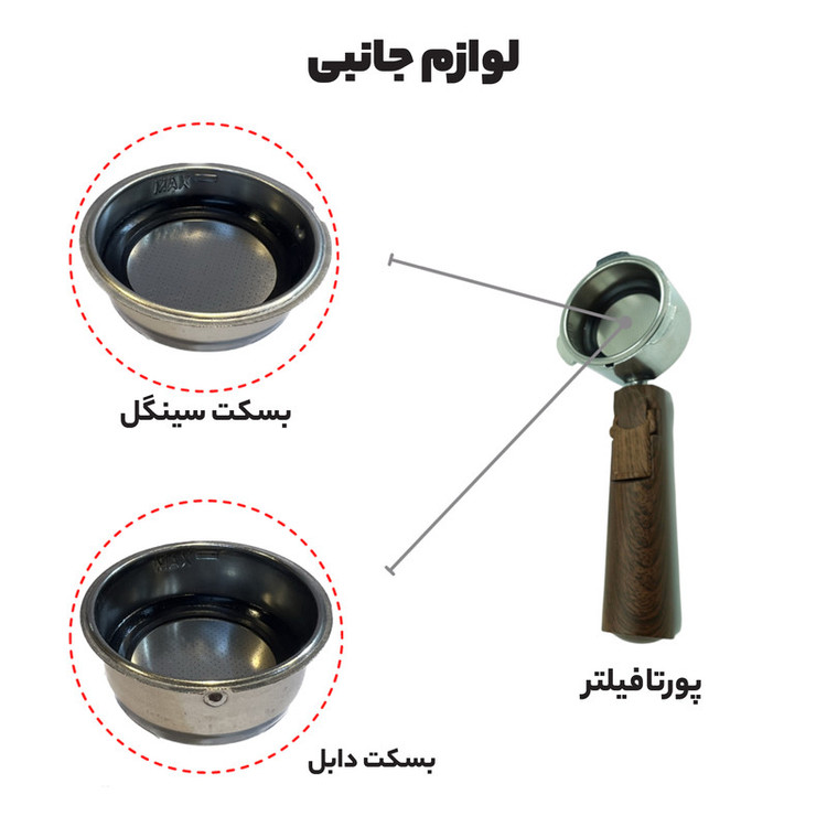 دسته گروپ دو عدد پرتا فیلتر قاشق و تمپر دفترچه راهنما مخزن شیر
