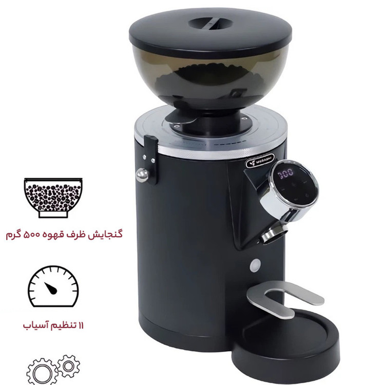 توان: 350 وات تعداد درجات تنظیم: 11 درجه مخزن هاپر: 500 گرم نوع تیغه آسیاب: تیغه صاف ( فلت) امکانات: ثانیه شمار سیم پیچی موتور: تمام مس سرعت آسیاب: 1.25 گرم در هر ثانیه ننوع پنل: لمسی نوع تیغه: فولاد ضد زنگ 60میلی متر