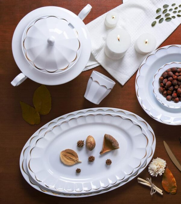 - سرویس نارسیس طلایی چینی زرین از سری نئوکلاسیک که در این سالهای اخیر طراحی و تولید شده است مناسب برای پذیرایی از دوازده نفر است و با طراحی منحصر به فرد طلایی هارمونی جذابی به این طرح داده است. از جمله تغییرات کاربردی این سرویس میتوان به بشقاب های بزرگ 27 سانتی اشاره کرد و دارا بودن دوازده عدد لیوان نوشیدنی در کنار فنجان و نعلبکی یک ایده بسیار کاربردی و جذاب برای میهمانی های باشکوه بانوی ایرانی است که به یادماندنی میشود.