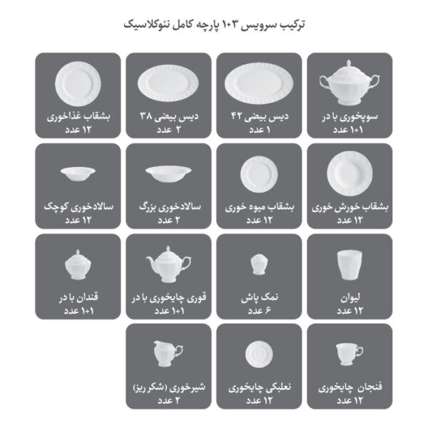 سرویس 103 پارچه 12 نفره طرح نارسیس زرین